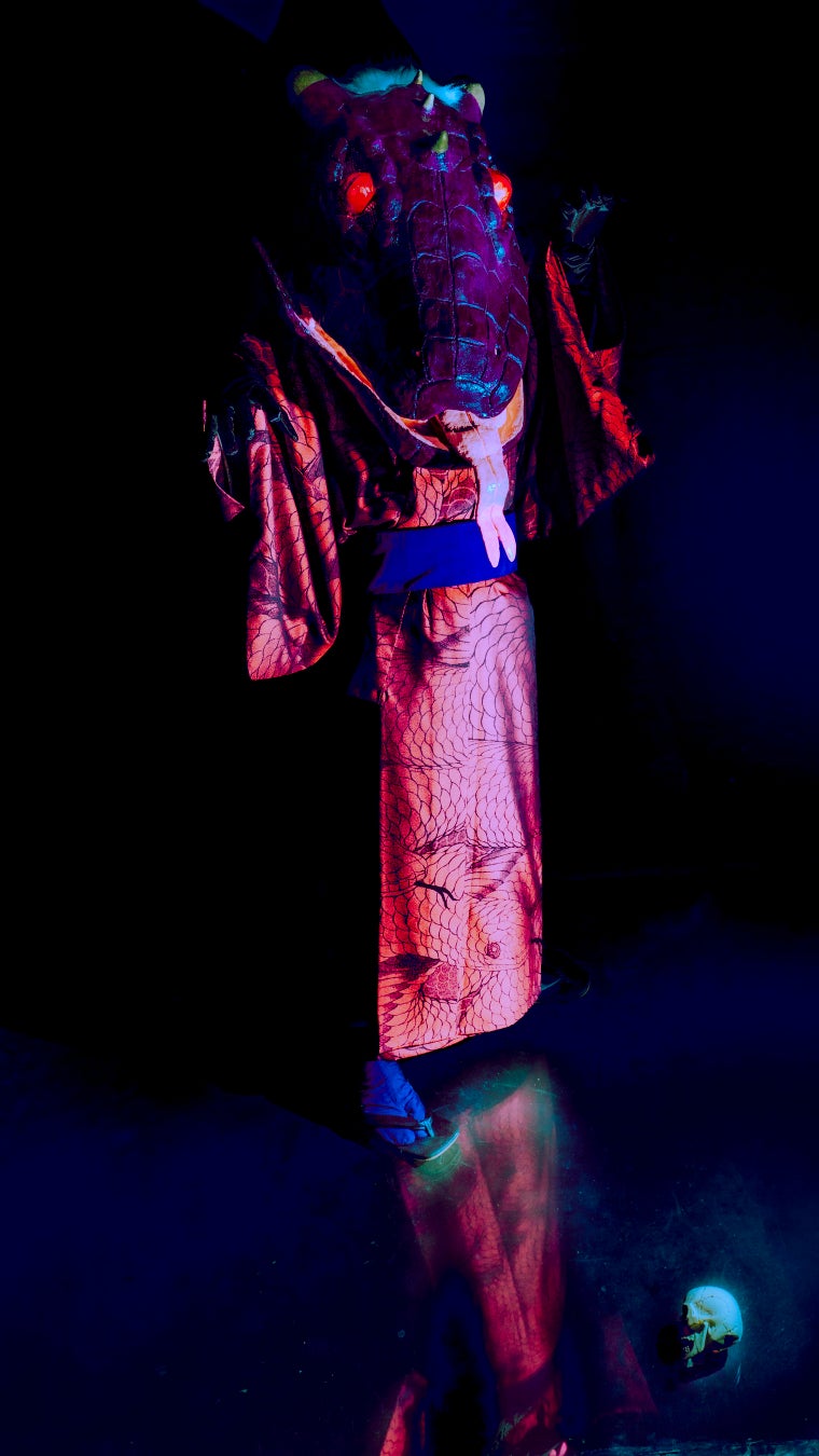 東京・大阪をはじめ、妖怪系のイベントがあれば各地から集合しパフォーマンスを披露する創作集団「悪役連合」。レイヤー、スチームパンカー、サバゲーマーなど様々な分野で活動している”悪役”達が、妖怪万博できらびやかで妖しいファッションショーを展開します。ステージパフォーマンスの締めくくりは、徒歩で10分程度のところにある人気のスポット「エンジェルロード」までパレード。記念撮影などもおこないます。