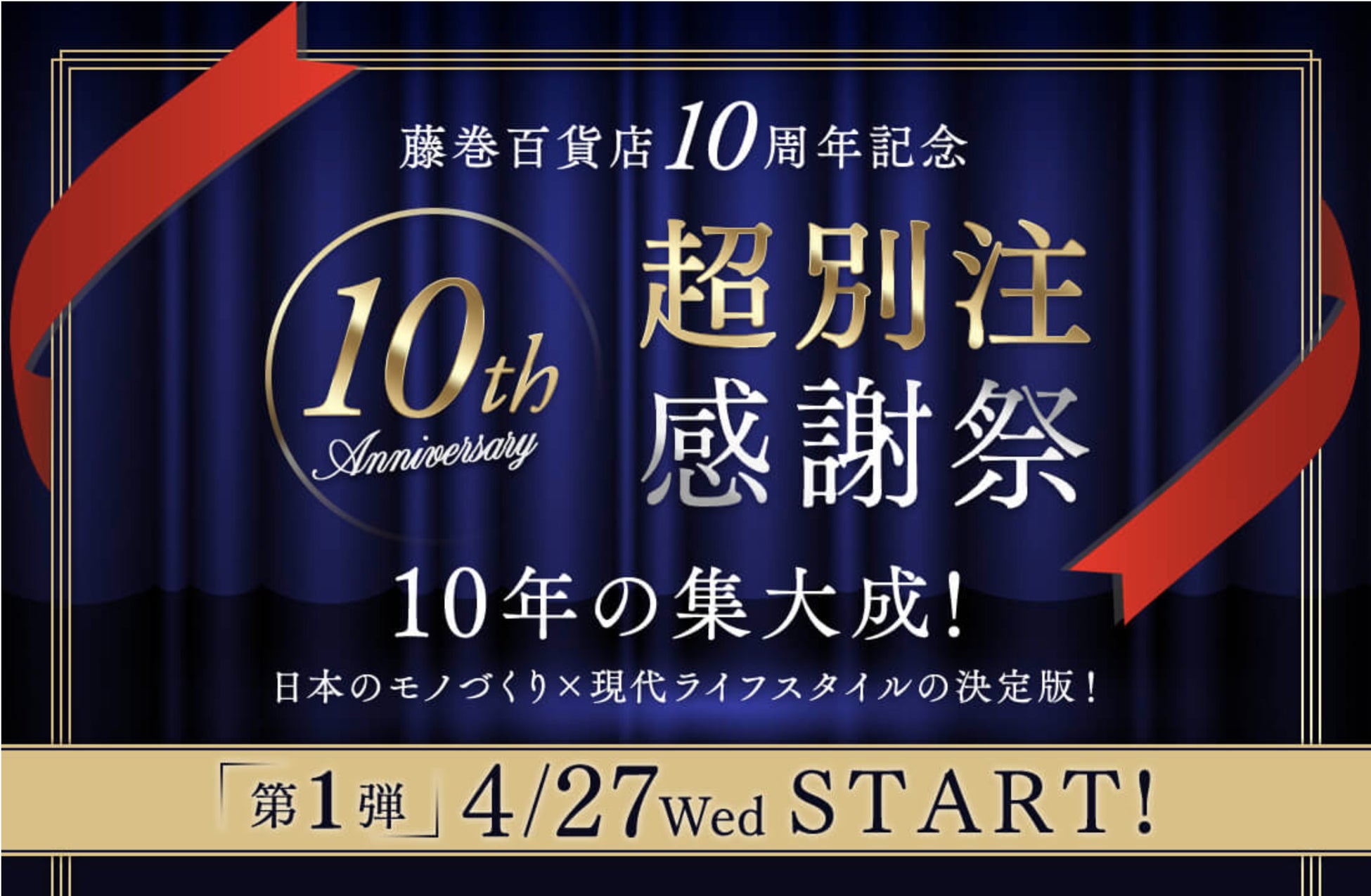 感謝祭第1弾は、4月27日(水)~5月8日(日)開催!創業10周年記念だからこそ実現できた、珠玉の逸品たちが続々登場します!