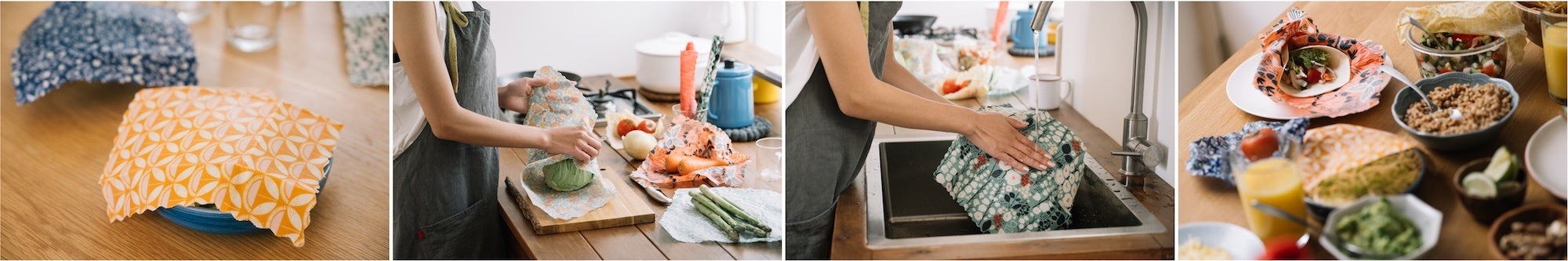 どんな形にもフィットし、繰り返し使えるだけでなく、ミツロウとホホバ油の優れた抗菌性により、天然の保存性を備え、食品の鮮度と美味しさを長持ちさせる特徴も。
