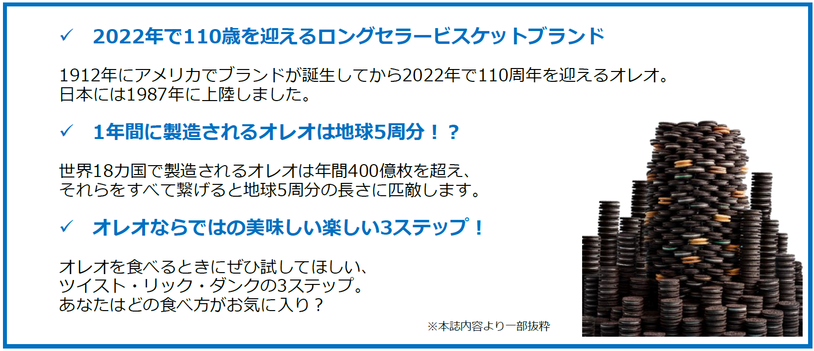 110年の歴史を持つオレオ。まだまだ知られていない豆知識がブランドブックに詰まっています。