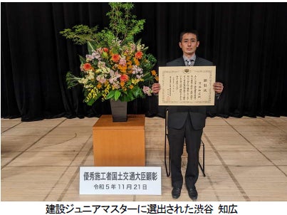 2023 年11 月21 日に開催された令和5 年度「優秀施工者国土交通大臣顕彰式典」において、ポラスグループのポラスハウジング協同組合(埼玉県草加市 代表理事:中内 晃次郎)所属の渋谷 知広(しぶや ともひろ)が建設ジュニアマスター(青年優秀施工者不動産・建設経済局長顕彰 被顕彰者)に選出されました。