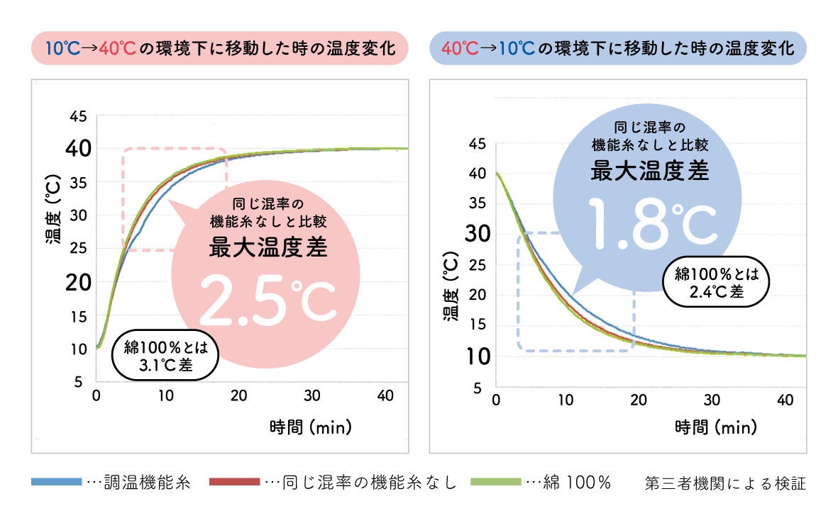 ①衣服内の温度変化をゆるやかにする機能性素材