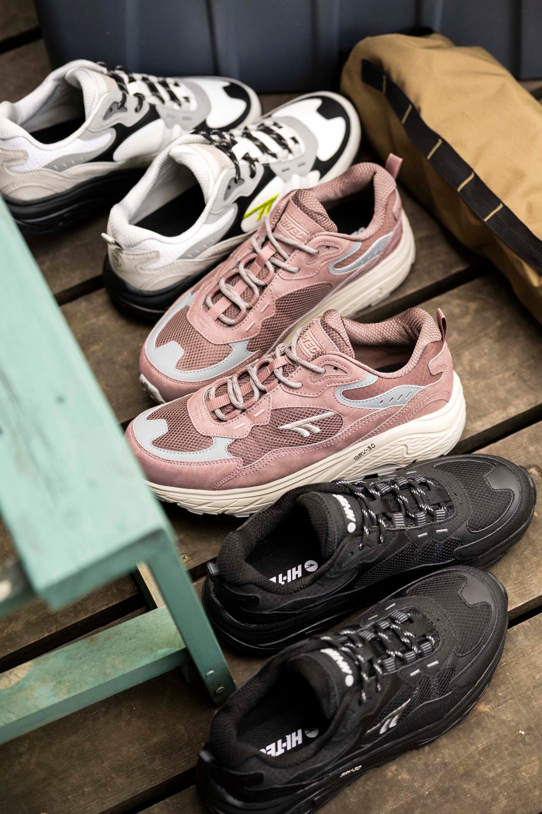 90‘sのアウトドアシューズのディテールを落とし込んだニューヴィンテージな佇まい。本格アウトドアに耐えうる高性能な機能を併せ持ち、オフロードからストリートまで様々なシーンに対応するHI-TECの人気ハイキングスニーカー。アッパーには高グレードの透湿防水メンブレンを使用した「DRI-HI STORM」を搭載。ミッドソールには高い衝撃吸収性能を持つ「GRV-30」を採用し、着地の衝撃を約70%軽減。足の負担を軽減し、快適な履き心地を実現します。2023SSでは定番カラーの「BLACK」に加え、グレートーンに爽やかなグリーンが映える「WHITE/GRAY」、肌馴染みのいいスモーキーピンクを基調とした「PLUM」が登場。