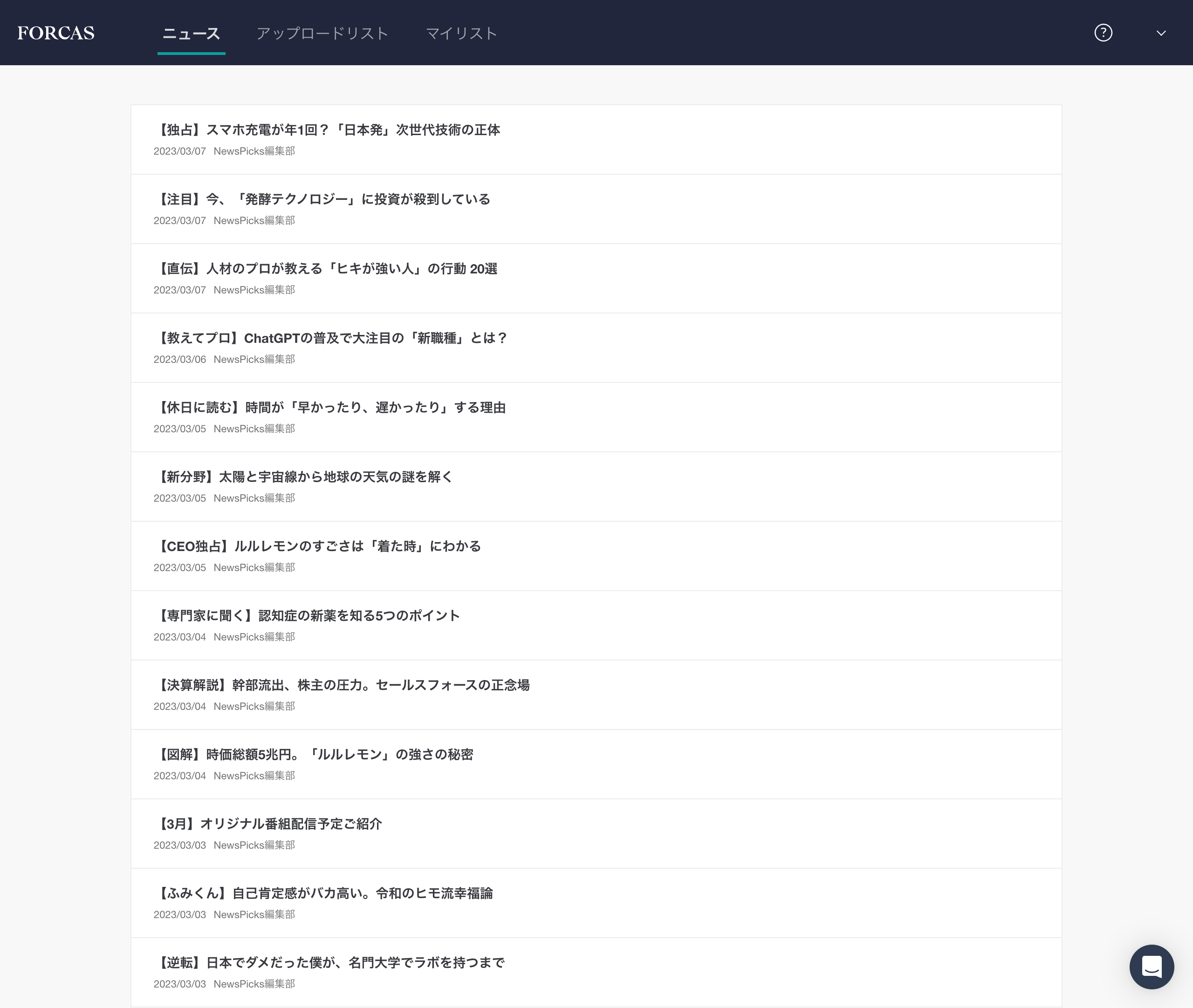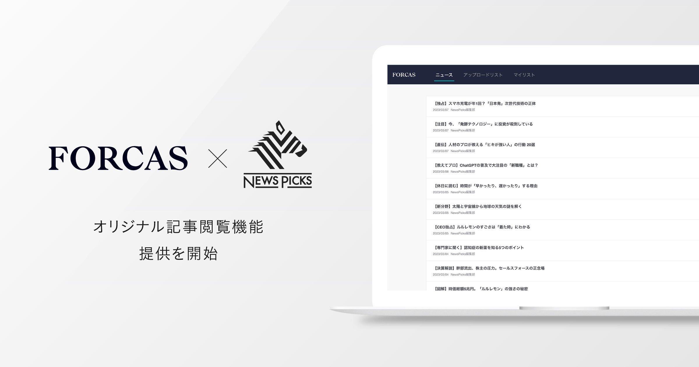 FORCAS、新たにNewsPicks記事へのアクセスが可能に