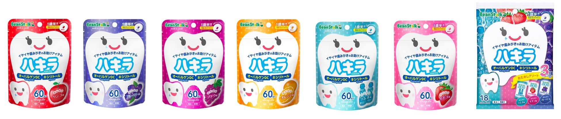 「ハキラ」は、 オーバルゲンDCとキシリトールを配合。奥歯が生えてくる1 歳半頃からのお子さまも安心して食べられる形状のタブレットです。