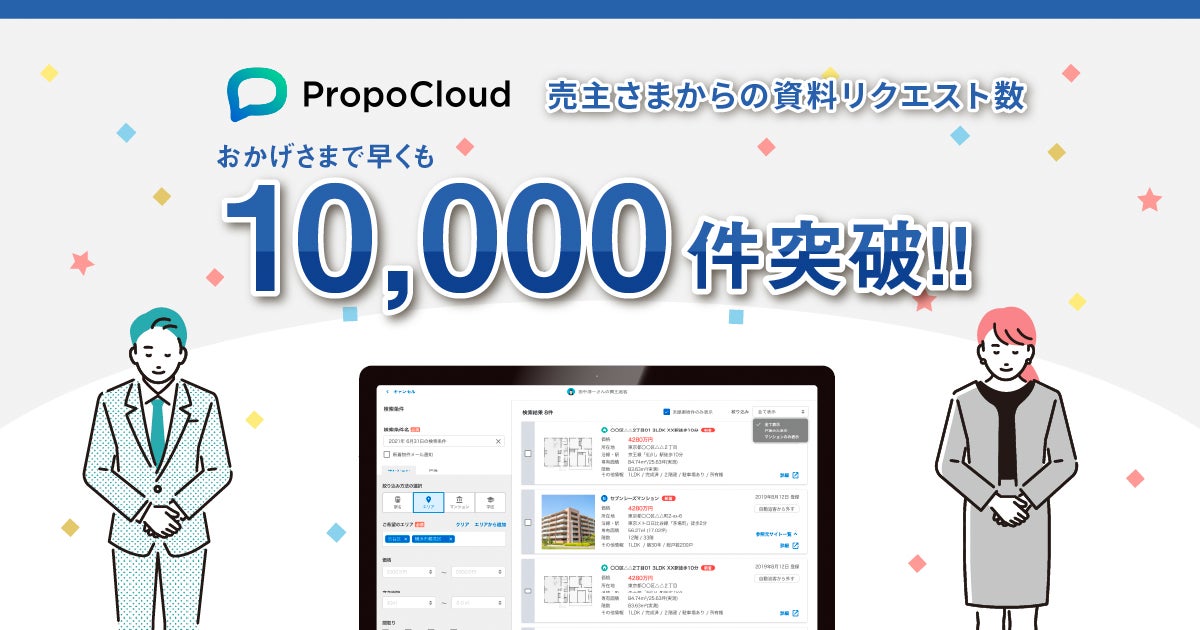 今回、「PropoCloud(プロポクラウド)」の売主追客機能をきっかけとした、売主さまからの資料リクエスト数が10,000件を突破したことを、嬉しく思います。