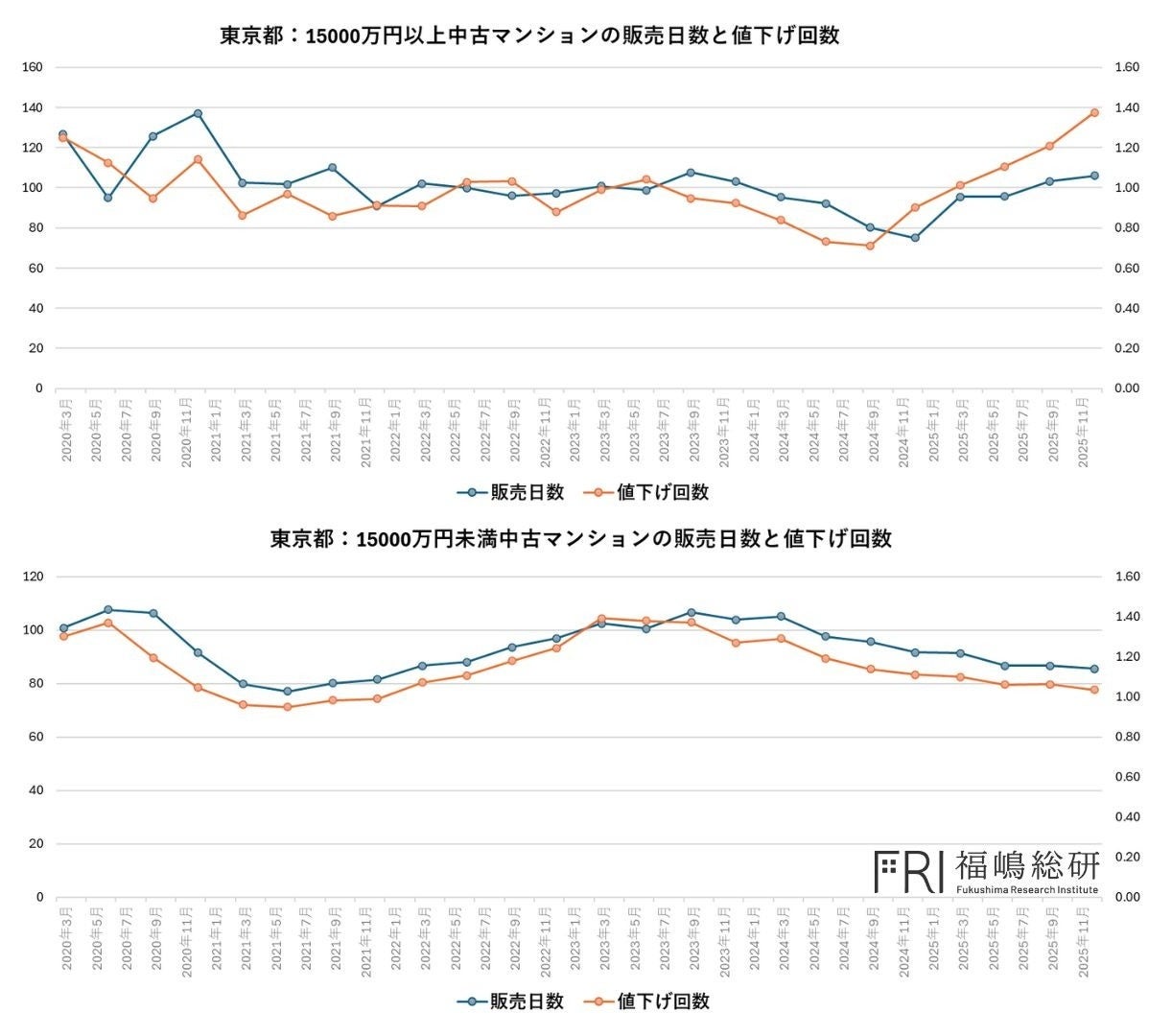 市場の実態を把握するうえで重要なのが、成約に至るまでの「販売日数」と「値下げ回数」です。これは、価格が上昇し続ける一方で、需給のバランスが徐々に変化していることを示すサインといえます。