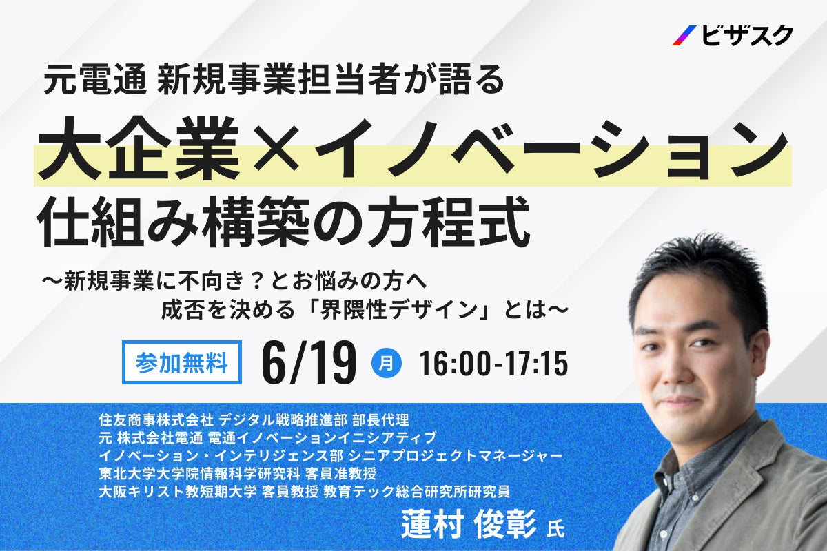 【6/19(月)16時】元電通 新規事業担当者が語る「大企業×イノベーション 仕組み構築の方程式」無料オンラインセミナーを開催