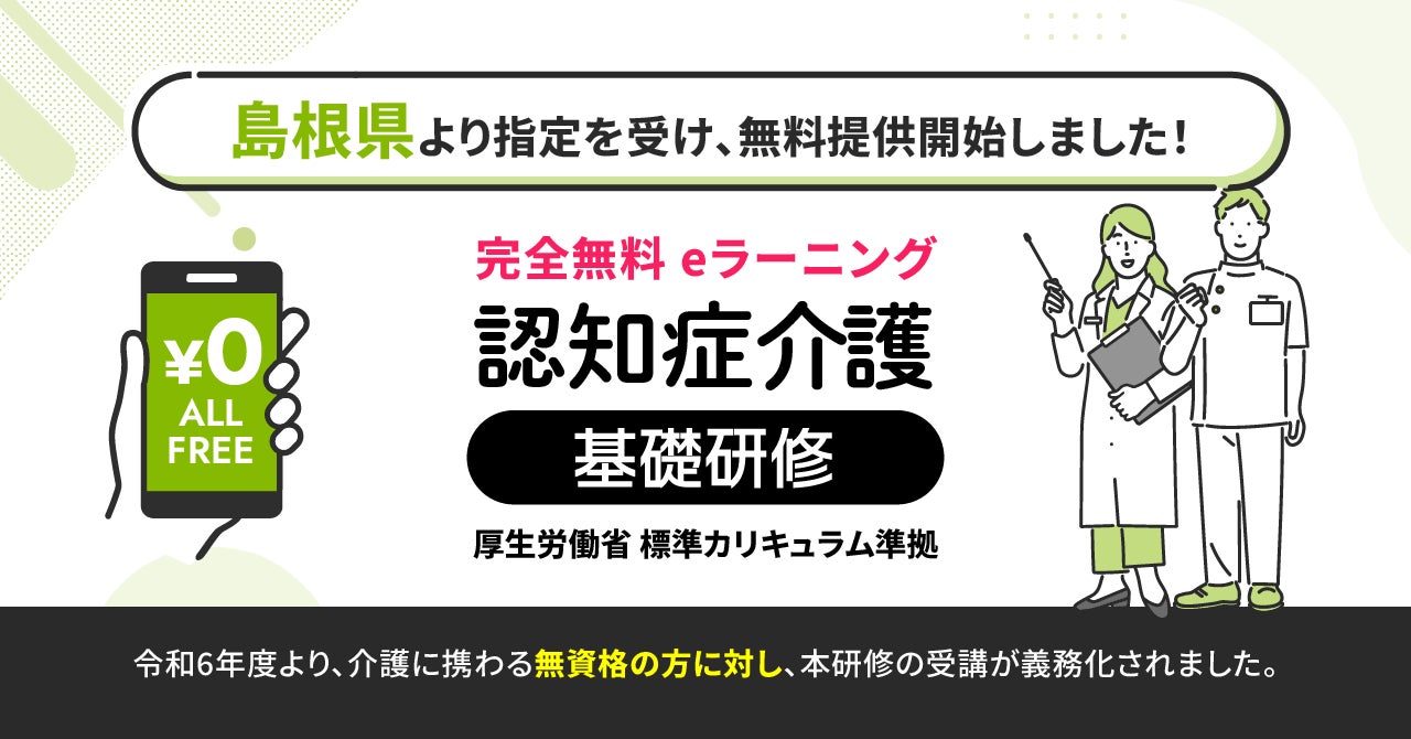認知症介護基礎研修 島根県より指定を受け、無料提供を開始しました。
