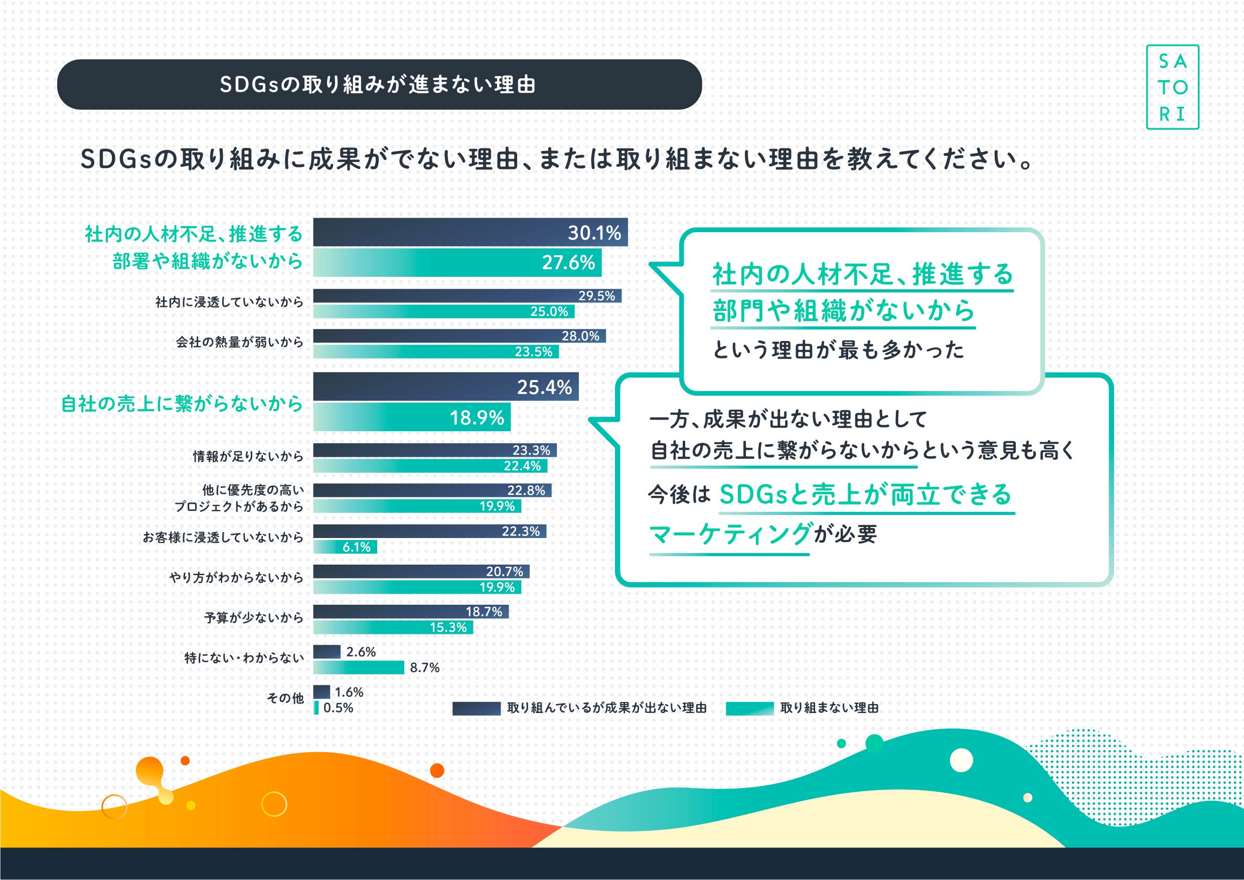 今回の調査では、SDGsに取り組んでいるがなかなか成果が出ない企業、取り組もうとしているが具体的な施策がない企業が多い現状があぶり出されました。その理由として、「社内の人材不足、推進する部門や組織がないから」が大きく、特に企業規模が小さい企業ほど、取り組みに課題を抱える傾向にあります。MAツールを導入している企業では、未導入の企業よりも取り組みが進んでいるという結果も出たので、社内のDX化により社内業務を効率化することで、小規模の企業でも人材不足のハンデを克服できる可能性はあると考えます。当社では、MAツール「SATORI」の提供を通じて、顧客企業のDX推進をしています。今後も、日本国内のDX推進と生産性向上に貢献し、日本におけるSDGsの課題にも向き合っていきたいと考えています。