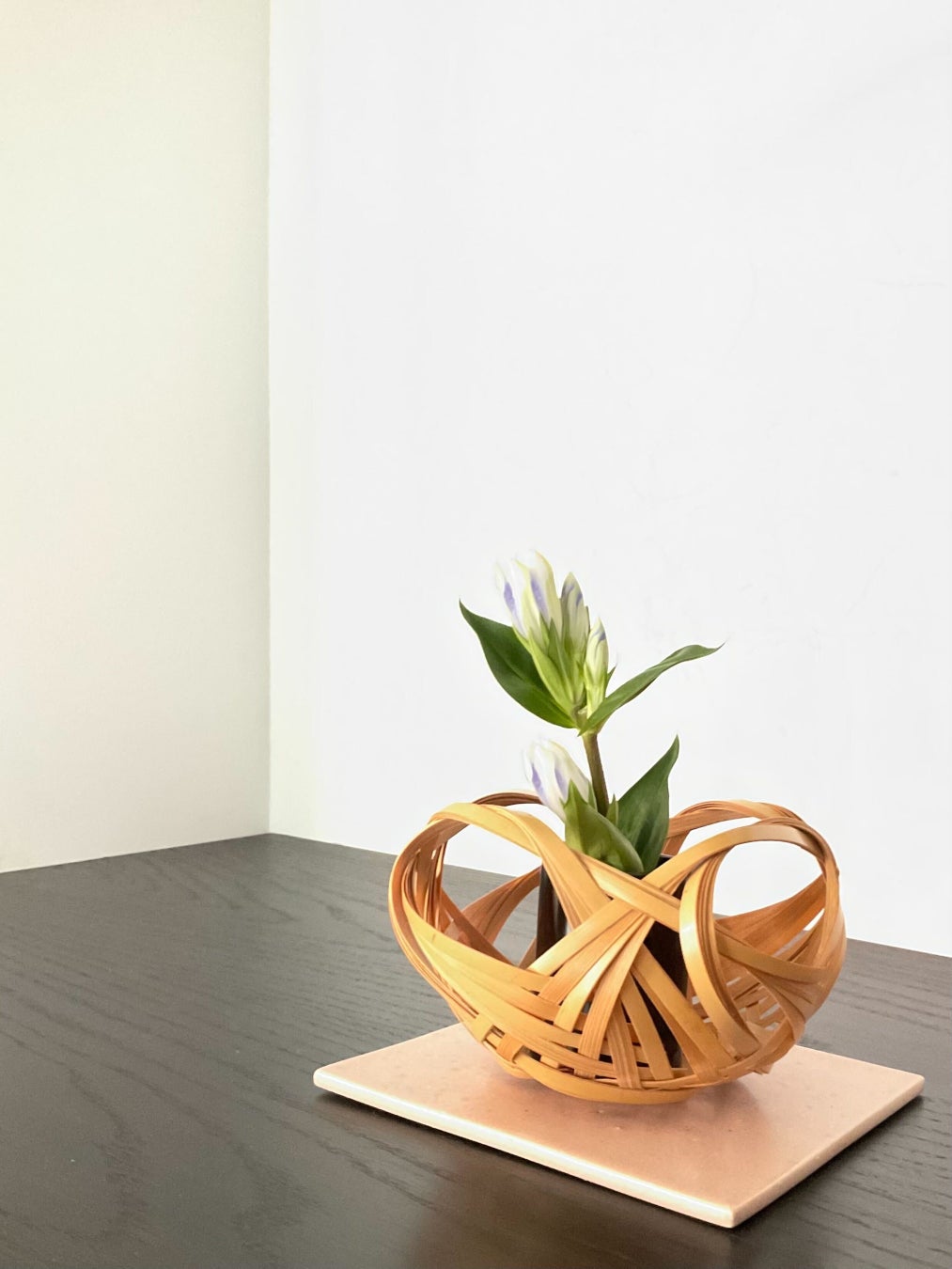 大分別府より竹工芸の職人の方をお招きし、丸くて可愛い花籠を作ります。