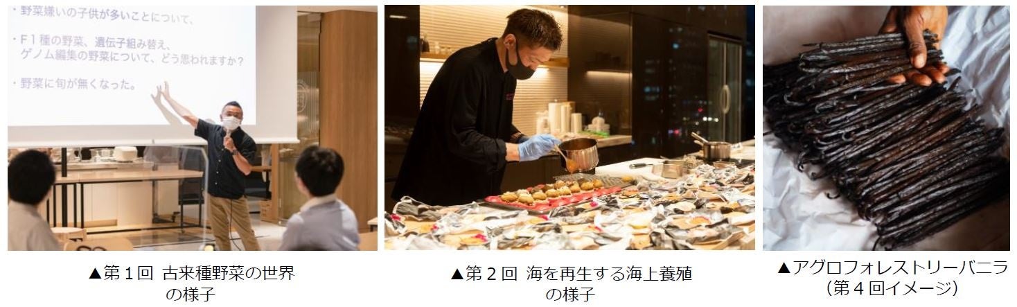 次回第4回は2022年9月28日(水)を予定しており、森林を保全しながら農作物を栽培する農法「アグロフォレストリー」がテーマです。マダガスカル産アグロフォレストリーバニラの輸入・販売を手がけるCo・En Corporationの武末克久氏と、千葉県鴨川市でアグロフォレストリーを実践する農地所有適格法人 株式会社 苗目の井上隆太郎氏をお招きし、人間の経済活動と自然環境の共存について考えます。また会場では、FARO(ファロ)シェフパティシエ 加藤峰子氏が森林への想いを表現した一皿をご提供する予定です。