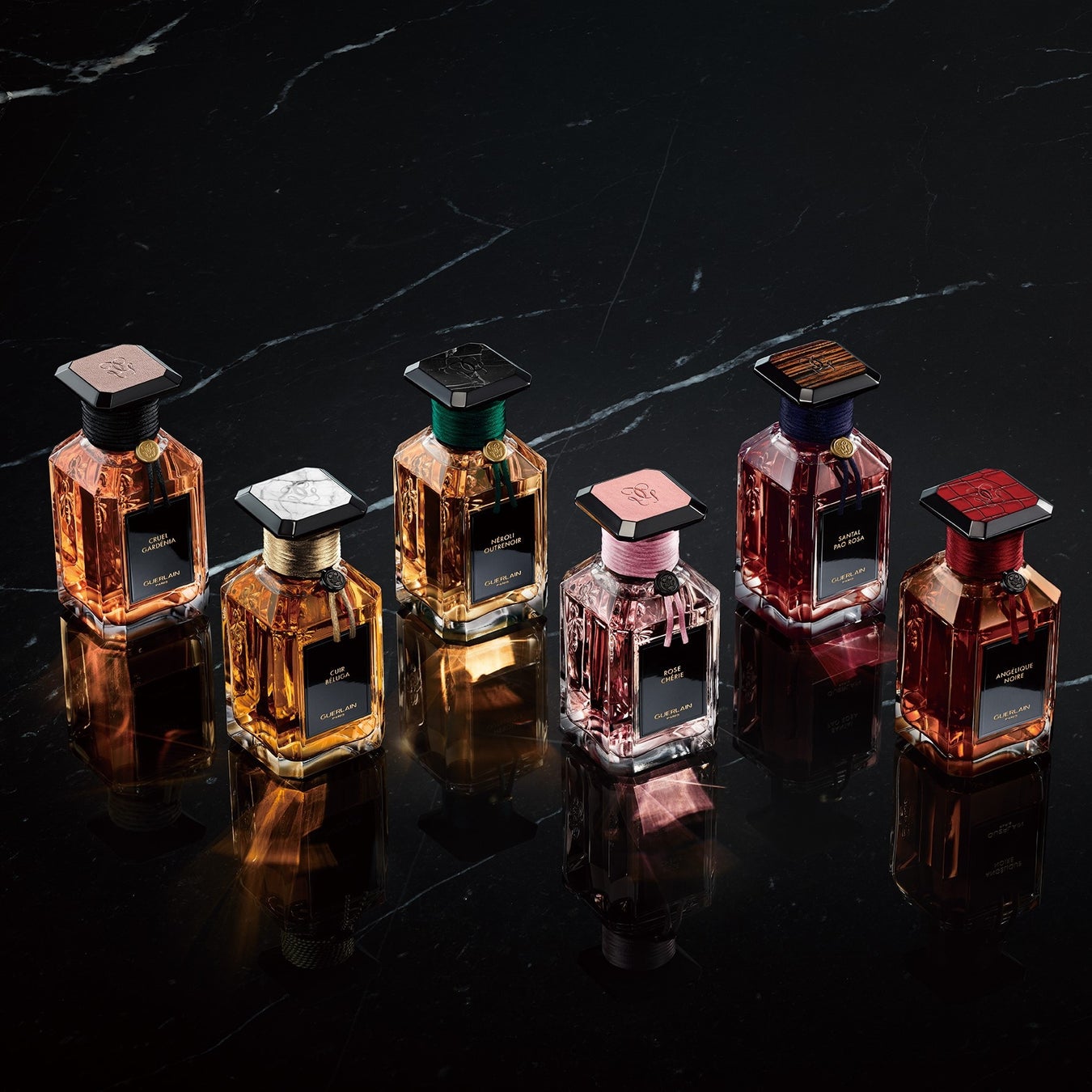最高級の素材を芸術へ昇華させる、「芸術と素材」という名の香りのコレクションは、アートにインスパイアされたゲランの調香師が、最も高貴で稀少な素材を用い、ありのままの感情を表現した、美を愛する人へ贈る香りの傑作です。2005年に誕生したこのラインは、2021年、新たな命が吹き込まれ、メゾンのフレグランスへの愛と情熱を象徴するラインとして更なる高みを目指して生まれ変わりました。