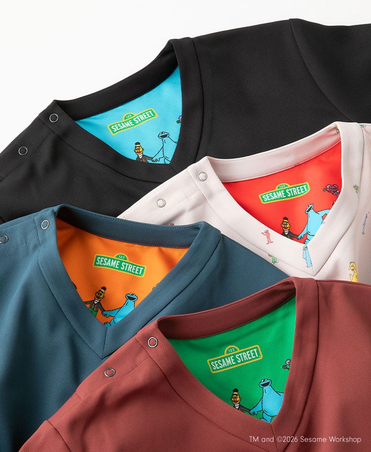 商品名:Scrub Canvas Club:SESAME STREETスクラブトップス・パンツ(男女兼用)