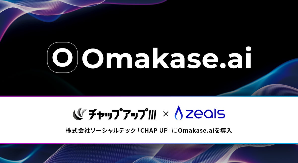 接客AIエージェントを提供する株式会社ZEALS(所在地:東京都目黒区、代表取締役:清水正大、以下「ジールス」)は、同社が提供するマルチモーダル接客AIエージェント「Omakase.ai」を、株式会社ソーシャルテック(所在地:東京都新宿区、代表取締役:望月 亨、以下「ソーシャルテック」)が展開するヘアケアブランド「CHAP UP」の公式サイトに導入したことをお知らせいたします。