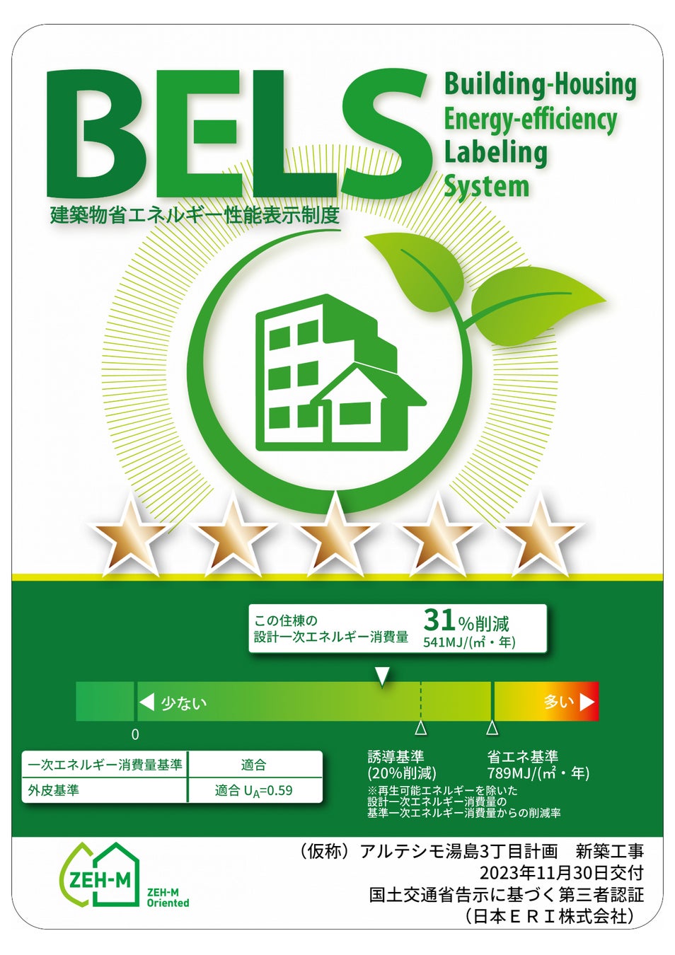 環境認証: BELS最高位(5つ星)、ZEH-M Oriented取得