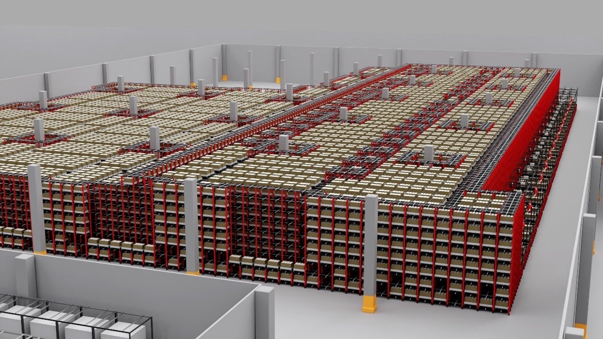 手原産業倉庫の大規模物流センターで3000㎡超の自在型自動倉庫「ラピュタASRS」が採用決定。人手不足時代に“スペース活用×出荷力向上”の実現を目指す。