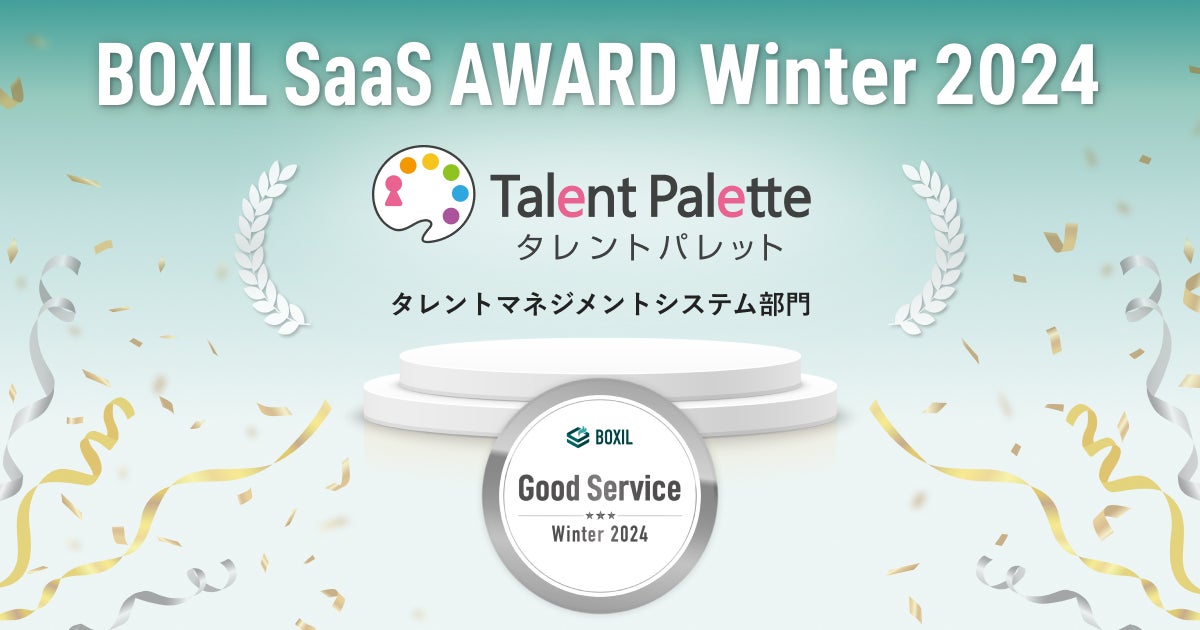 タレントパレットが「BOXIL SaaS AWARD Winter 2024」のタレントマネジメントシステム部門にて口コミの総得点が高い「Good Service」を10期連続で受賞