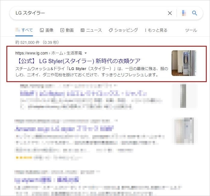 【STEP 1】「LG スタイラー」を検索エンジンで検索