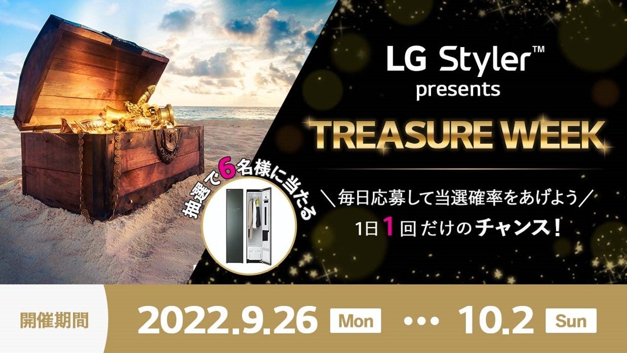 LGエレクトロニクス・ジャパン株式会社(代表取締役:孫 成周(ソン・ソンジュウ本社:東京都 中央区)は、LG Stylerの新モデルが抽選で6名様に当たるキャンペーン、『LG Styler presents TREASURE WEEK』を、本日2022年9月26日(月)から10月2日(日)まで実施します。