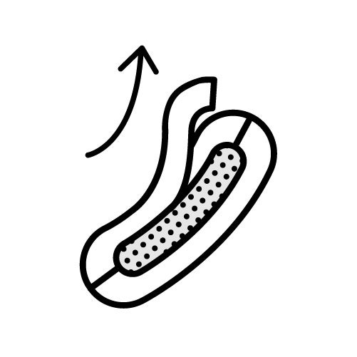 ②透明ケースからパッチを取り出し、パッチの中央の突起部分に触れないように保護フィルムをはがします。