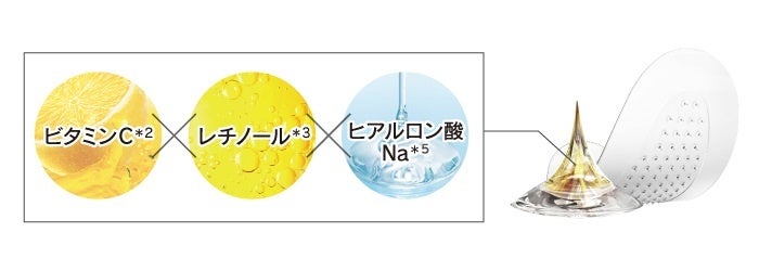 ビタミンC*²、レチノール*³、ヒアルロン酸Na*⁵ を贅沢に配合してニードル(針)状に固めた美容液。