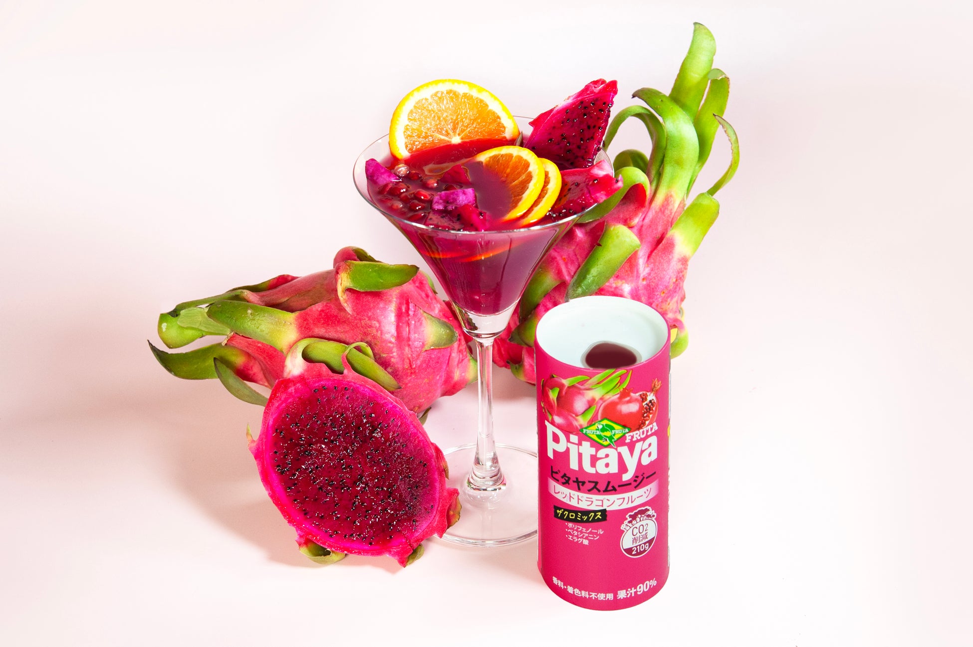 ピタヤとは実が竜のうろこのような皮に覆われていることから「ドラゴンフルーツ」と呼ばれるサボテン科の果実です。レッドピタヤは見た目の華やかさとともに特有の栄養素が含まれることから、近年世界ではアサイーに並ぶスーパーフードとして注目が集まっています。
