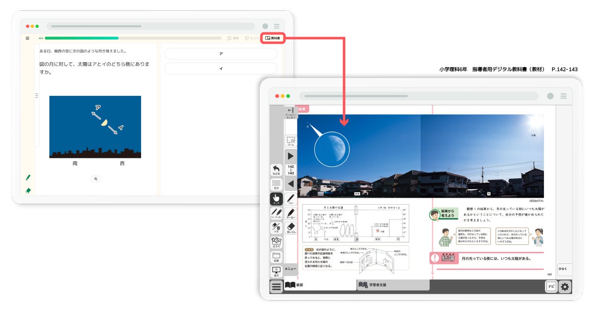 デジタル教科書と、教科書に準拠した問題を搭載したAI型教材「キュビナ」の連携