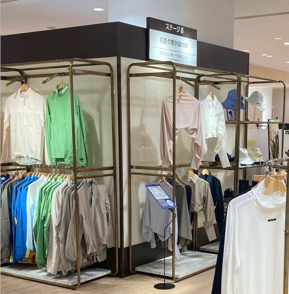 今回の期間限定ショップでは、帽子、アウター、日傘など、オンラインショップで人気の紫外線対策アイテムを多数ラインアップ。 普段はオンライン販売が中心のため、実際に商品を手に取ってご覧いただける貴重な機会となります。素材感や着用感、サイズ感をその場でお確かめいただけます。