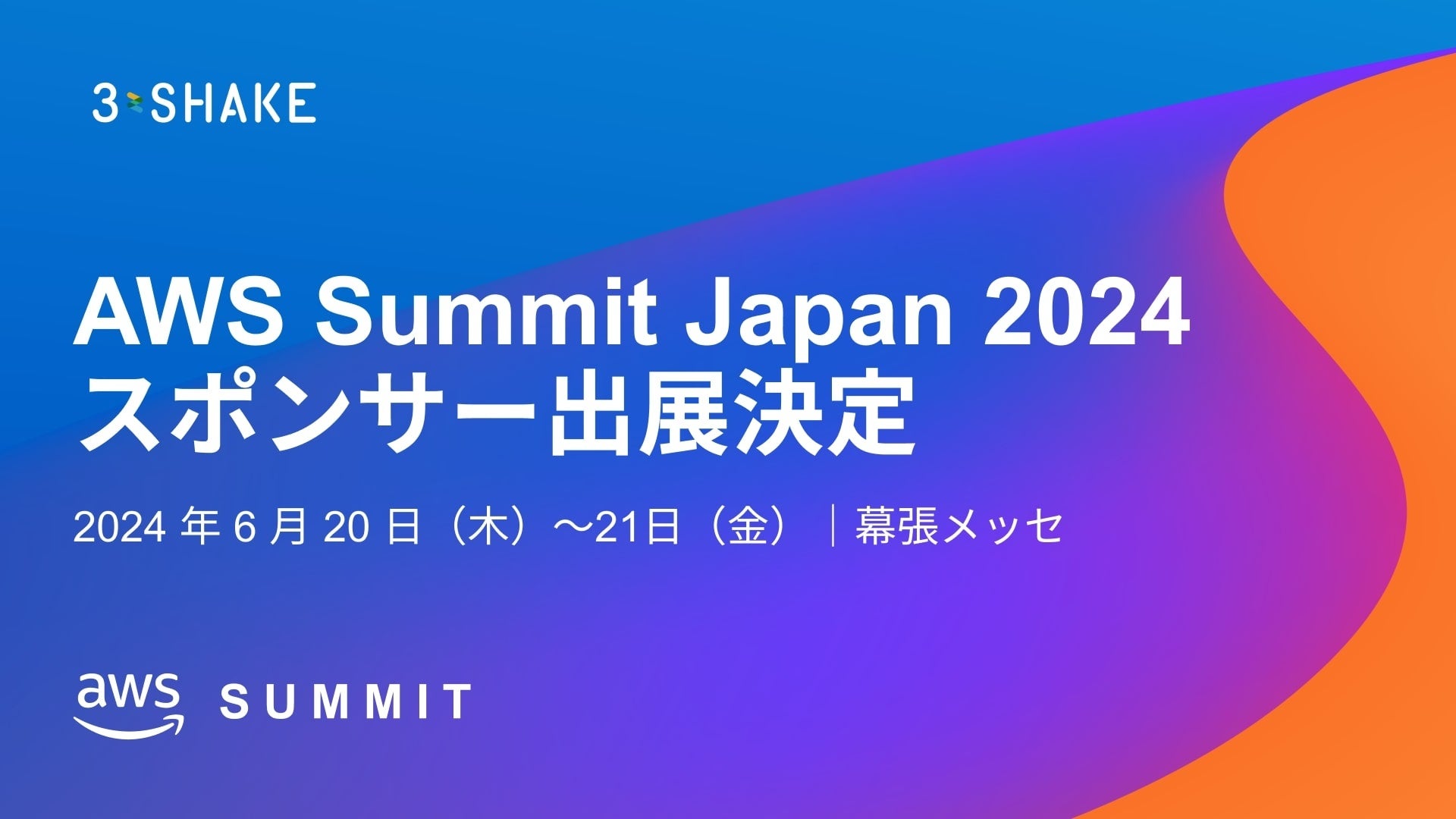 株式会社スリーシェイク(本社:東京都新宿区、代表取締役社長:吉田 拓真、以下スリーシェイク)は、2024年6月20日(木)、21日(金)に行われる日本最大の AWS を学ぶイベント「AWS Summit Japan 2024」にシルバースポンサーとして出展、また、パートナーセッションに登壇することをお知らせします。