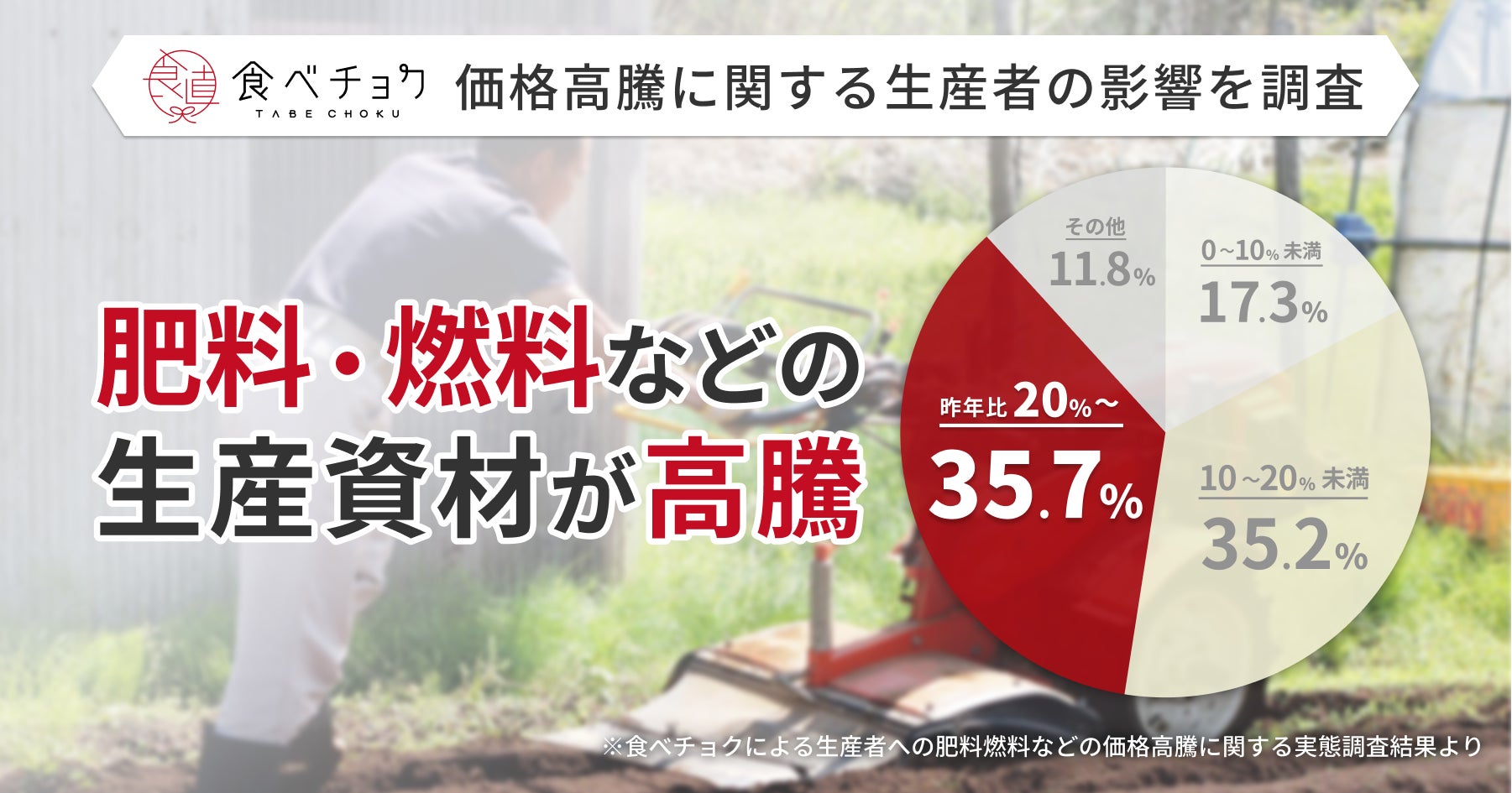 認知度・利用率など6つのNo.1(※1)を持つ日本最大の産直通販サイト「食べチョク」を運営する株式会社ビビッドガーデン(本社:東京都港区、代表取締役社長:秋元里奈)は、昨今の肥料や燃料などの価格高騰を受け、生産者の影響に関する実態調査を行いました。