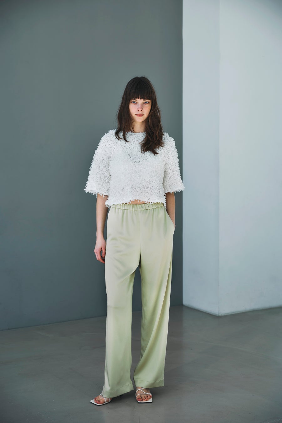 シルクに近い光沢感を出す特殊な撚糸の糸を使用したハンマーサテンのイージーパンツ。シワにもなりにくく、夏に向けても活躍してくれる万能な1枚です。ドロワットで人気のパンツが新色を加えて新たに登場しました!