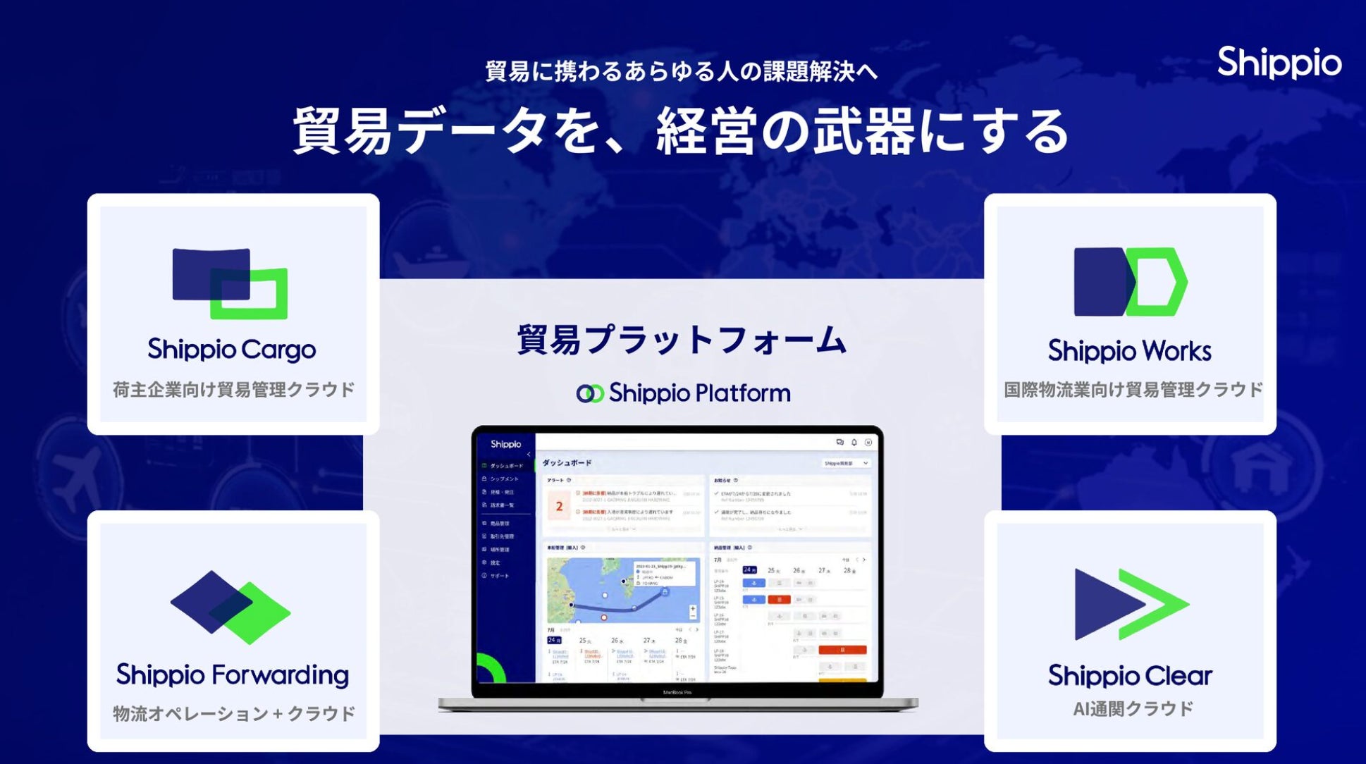 Shippioは荷主企業から国際物流事業者、通関業者に至るまでサプライチェーンに関わる多様なステークホルダーに向けたプロダクトを開発し貿易プラットフォーム「Shippio Platform」を運営しています。