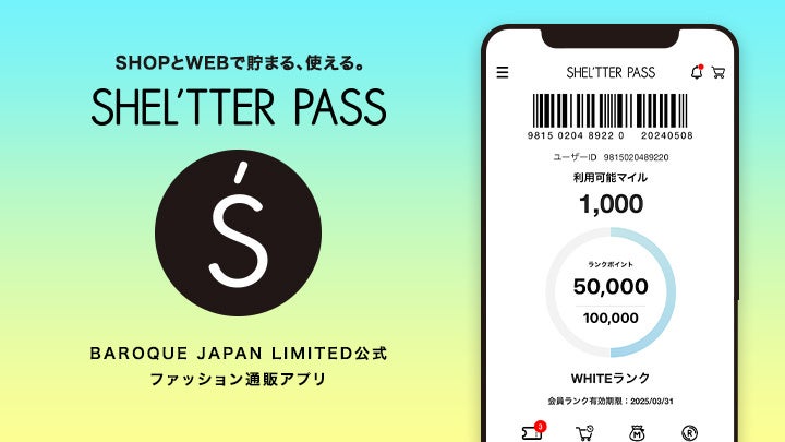 この度、バロックジャパンリミテッドの公式アプリ「SHEL'TTER PASS(シェルターパス)」との連携により、新たな顧客体験とデータ収集の仕組みを提供します。