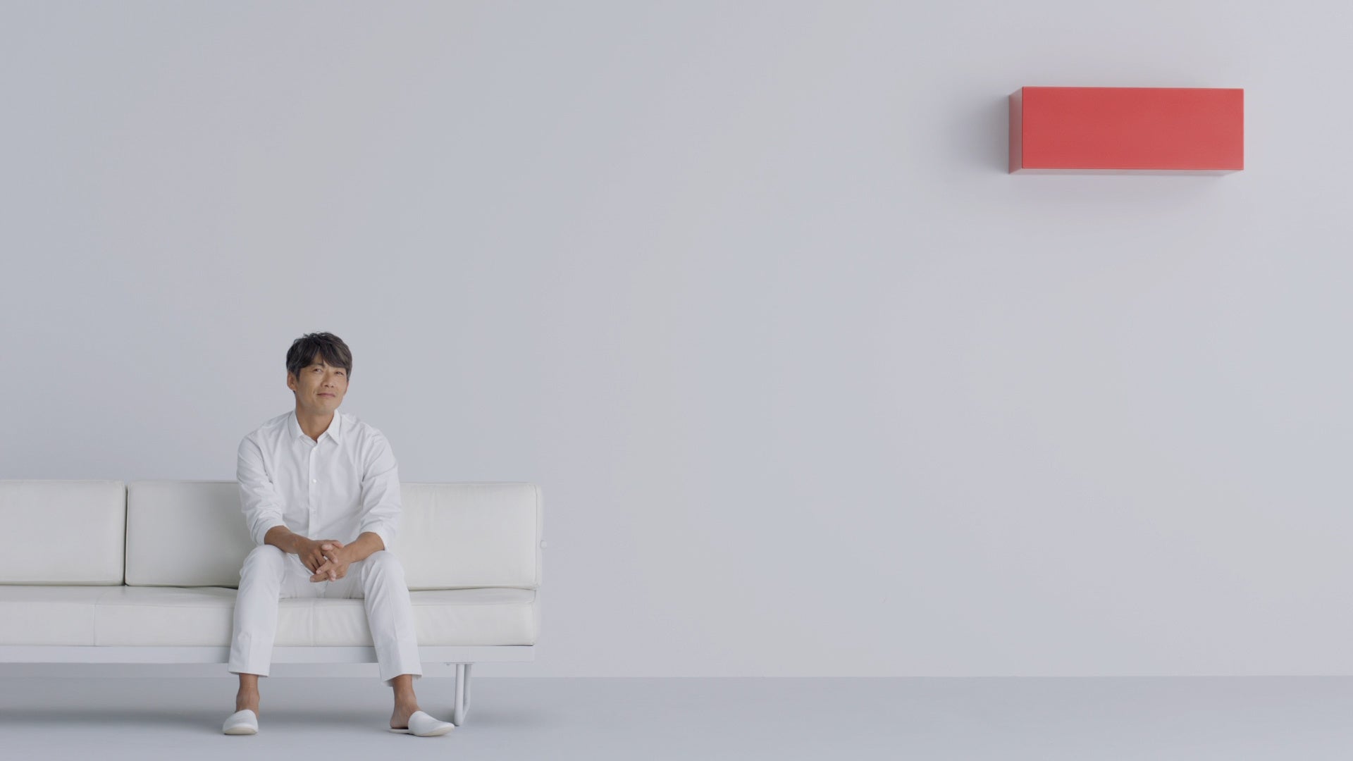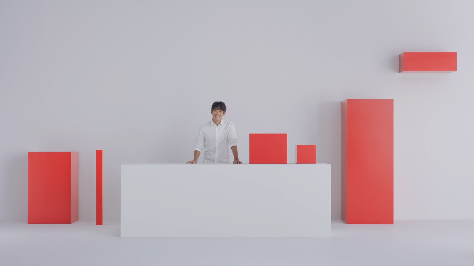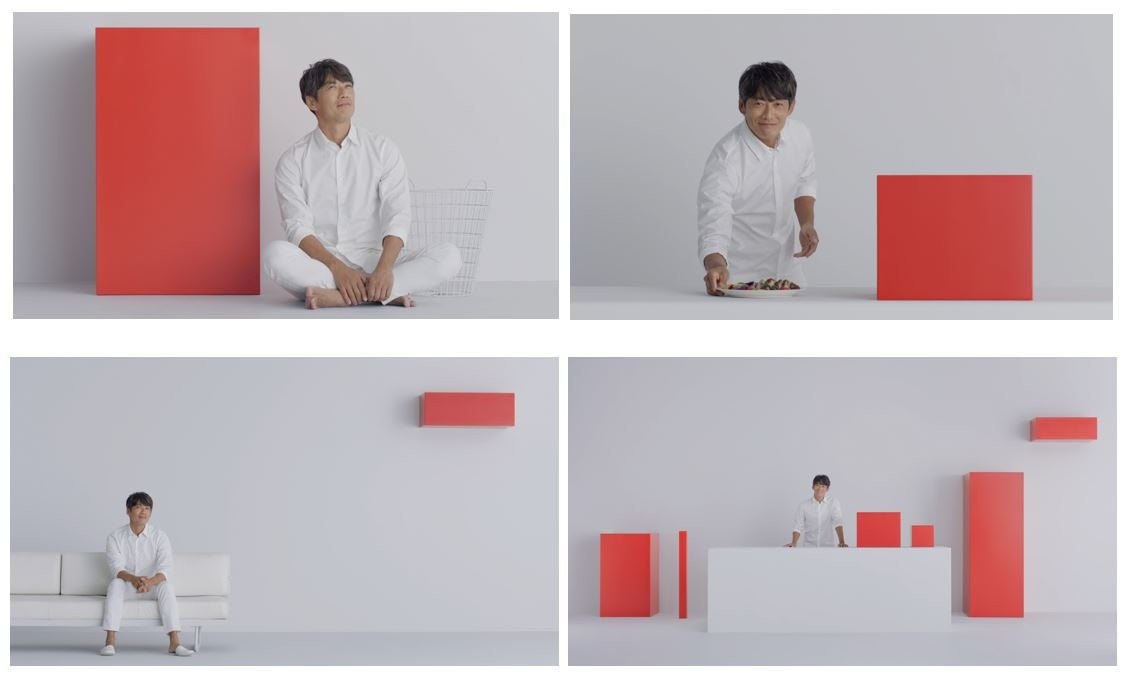 今回オンエアする『レッドスクエア 登場』篇は、赤い四角の家電に囲まれた、白いシンプルな家の中が舞台です。「誰かにそっと寄り添う気持ち。ささやかな幸せに満たされる気持ち。」というナレーションに合わせ、日常生活の中にあるささやかな幸せを描いています。