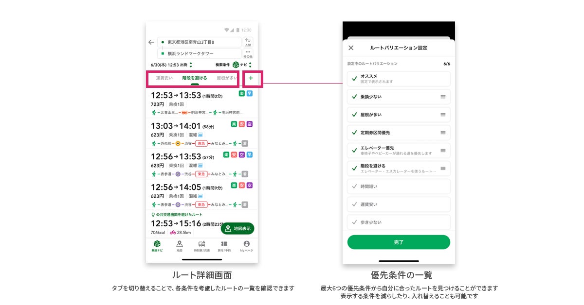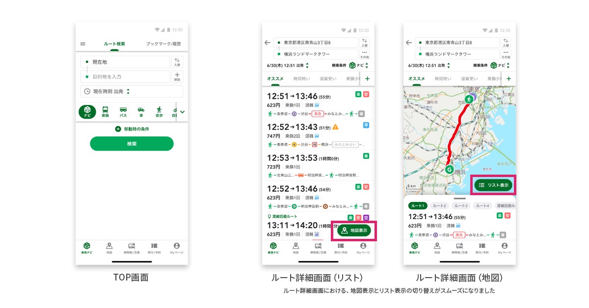 これらの変更により、移動に関する豊富な情報を集約させながらも視覚的に分かりすく整理することで、ユーザーは状況に応じてより最適なルートを選択しやすくなりました。