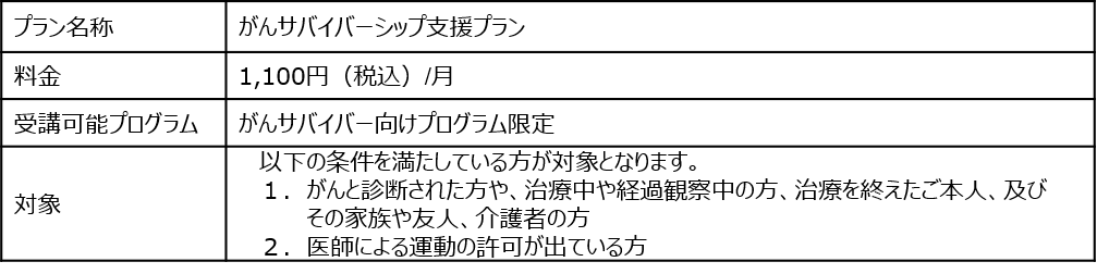今後もがんサバイバーの方が、気軽に安心して運動ができ、インストラクターや参加者同士がオンラインで繋がることで、気持ちのリフレッシュや心のケアができるよう、この度がんサバイバー限定の新プラン導入を決定いたしました。