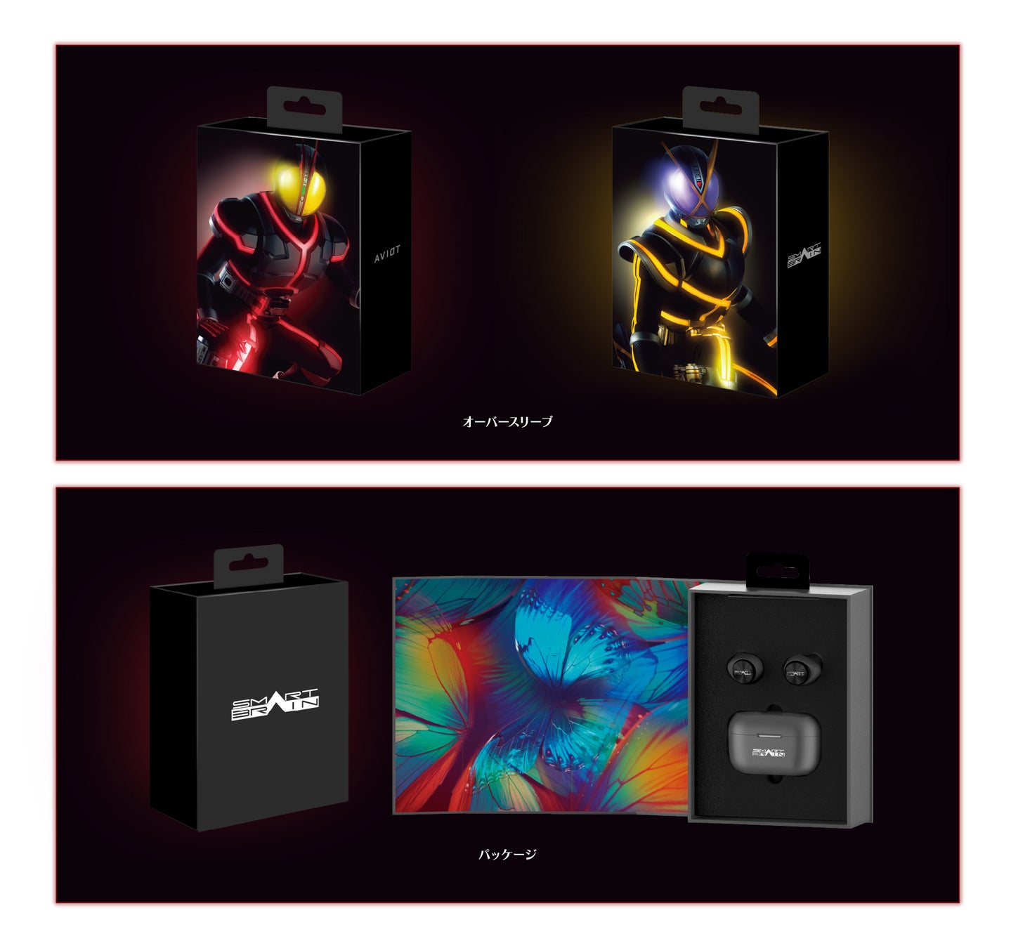シリーズ累計出荷数約9万台(*1)を記録したAVIOTのヒットモデル「TE-D01v」をベースに、『仮面ライダー555』の魅力を堪能できる特別仕様の完全ワイヤレスイヤホン。
