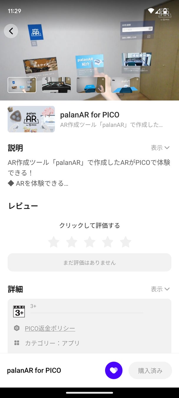 ◆ PICO 4のストアの「palanAR」ページ
