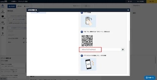 ③ARができたら保存して、「AR体験」からIDを確認すればWebでの操作は完了です。IDは「プロジェクト設定」で任意の文字列に変更も可能です。