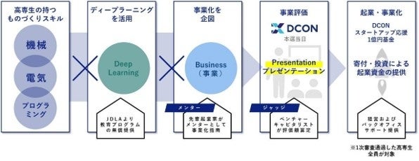 高専生が日頃培った「ものづくりの技術」と「ディープラーニング」を活用した作品を制作し、その作品によって生み出される「事業性」を企業評価額で競うコンテスト
