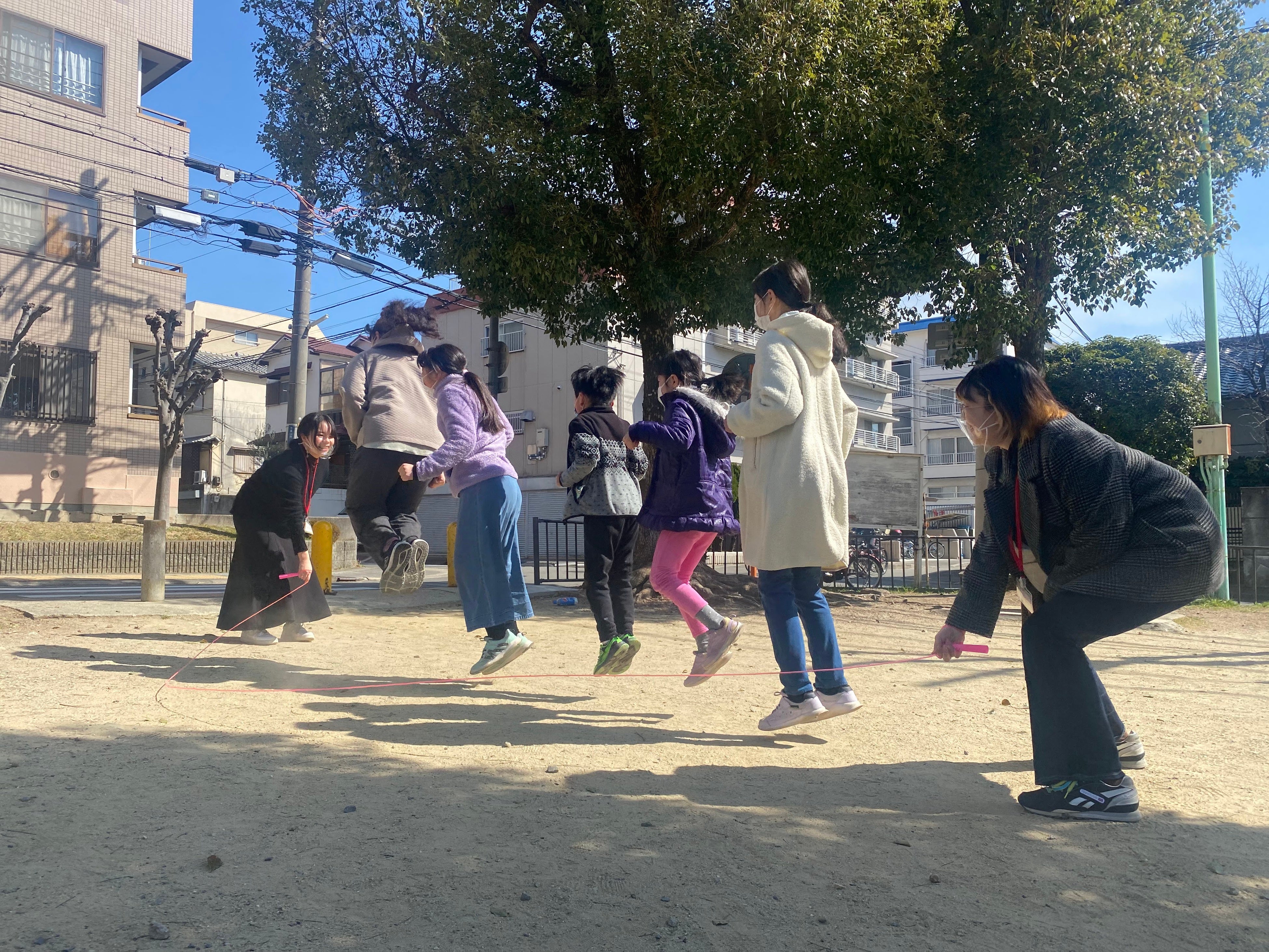 えいごかるた、なんじゃもんじゃ、ツイスター、読み聞かせなどの室内遊びや、屋外では、はないちもんめ、大縄、ボールゲーム各種、鬼ごっこなどを実施しました。