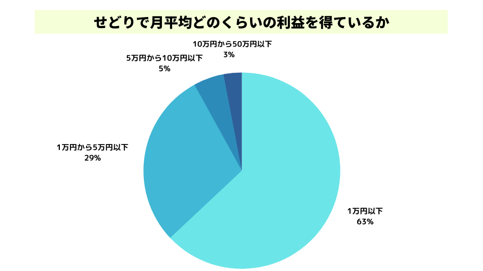 せどりで月平均で得ている利益は1万円以下と答えた人が多く63%でした。