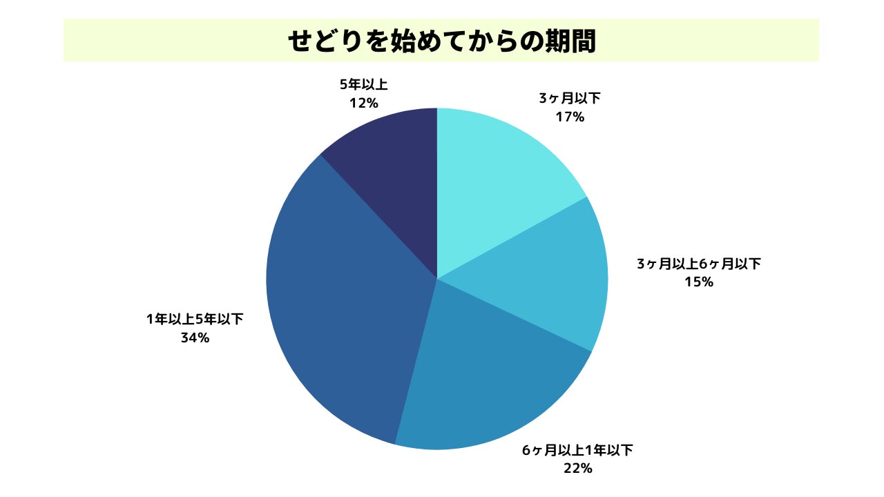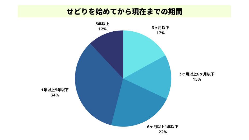 回答者にせどりを始めてからの期間をヒアリングした結果、割合は以下のとおりとなりました。