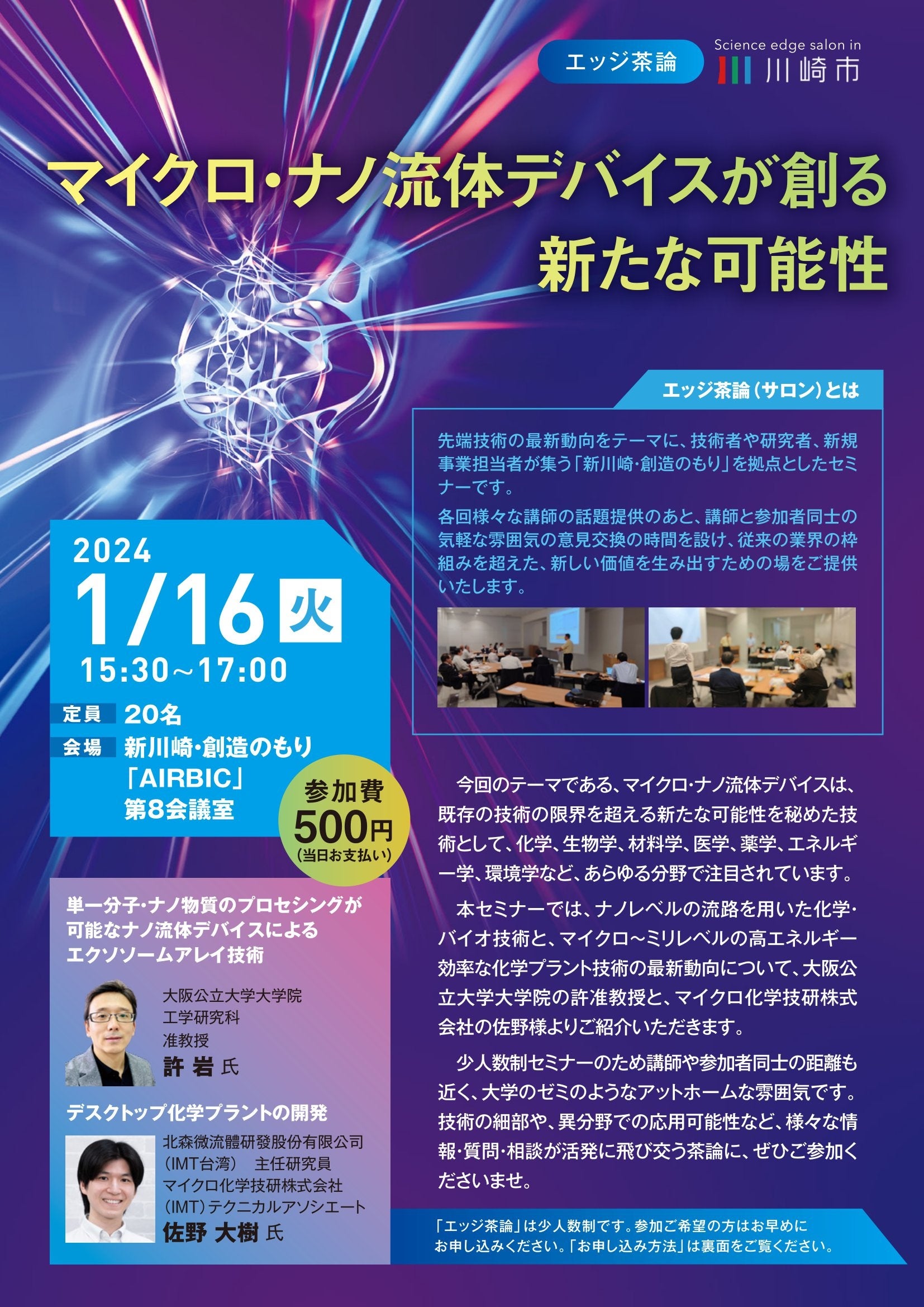 【1/16開催】第2回エッジ茶論のご案内:マイクロ・ナノ流体デバイスが創る新たな可能性