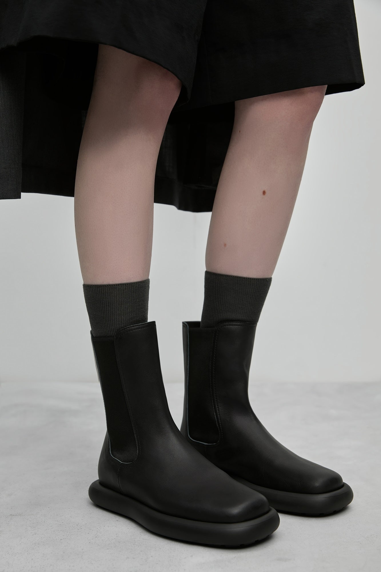 「BILLIE(ビリー)」は、ベーシックなスタイルをユニークに解釈した存在感のある大胆なシルエットの新ラインです。カウボーイからインスパイアされたチャンキーで彫刻的な美しさが、勇敢な女性らしさを象徴しています。季節感のあるワントーンカラーを基調とし、柔らかいレザーアッパーのサイドジップブーツと足に優しいTENCEL™ (テンセル)のソックスブーツが展開。ボリューミーでミニマムなシルエットはどんなスタイリングも受け止めてくれ、日常的にお履きいただける一足に仕上がっています。