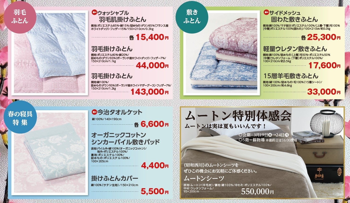 【昭和西川 小田急百貨店 町田店・春の工場直送寝具バーゲン】