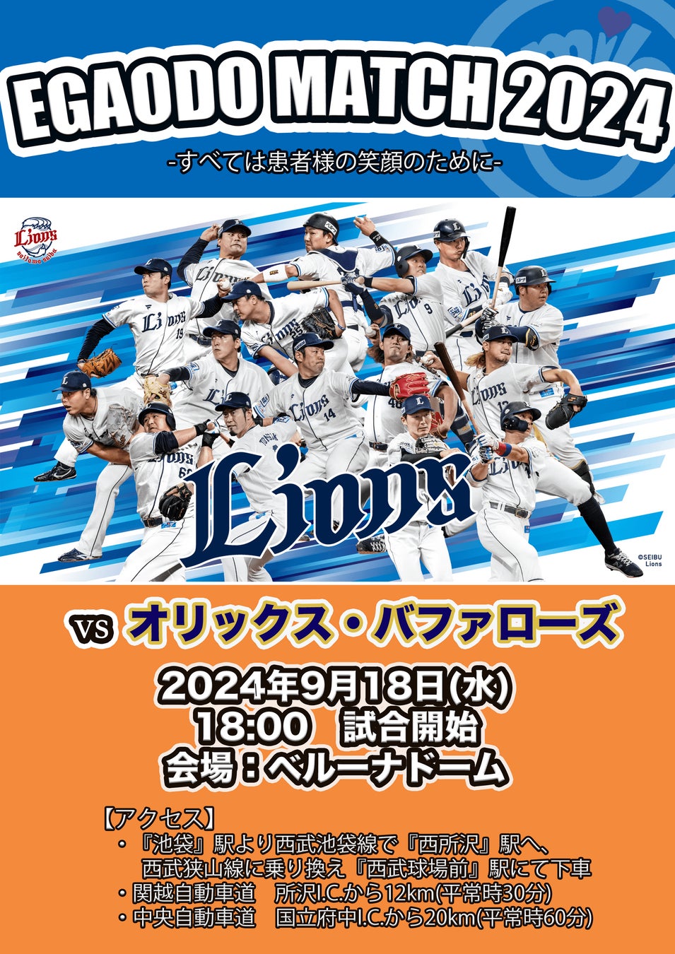 プロ野球チーム「埼玉西武ライオンズ」笑顔道鍼灸接骨院グループ「EGAODO MATCH 2024」開催