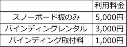 【POWDER SHAPE PREMIUM RENTALS利用料金】