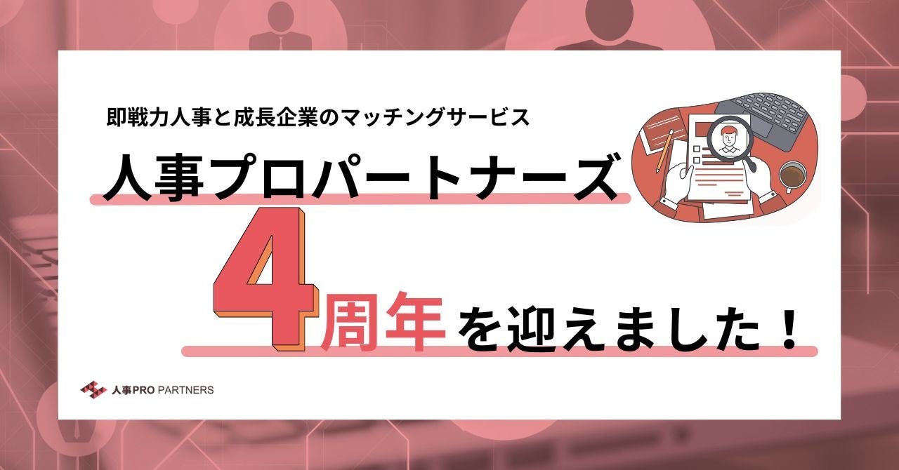 プロフェッショナル人事と企業のマッチングサービス「人事プロパートナーズ」が4周年を迎えました!